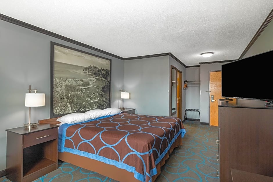 This room has 1 king size bed, 39" flat panel tv, mini-refrigerator/microwave, hair dryer, coffee maker, lounge chair, table and chairs, desk, free WIFI access. Fully controllable heating and air conditioning.